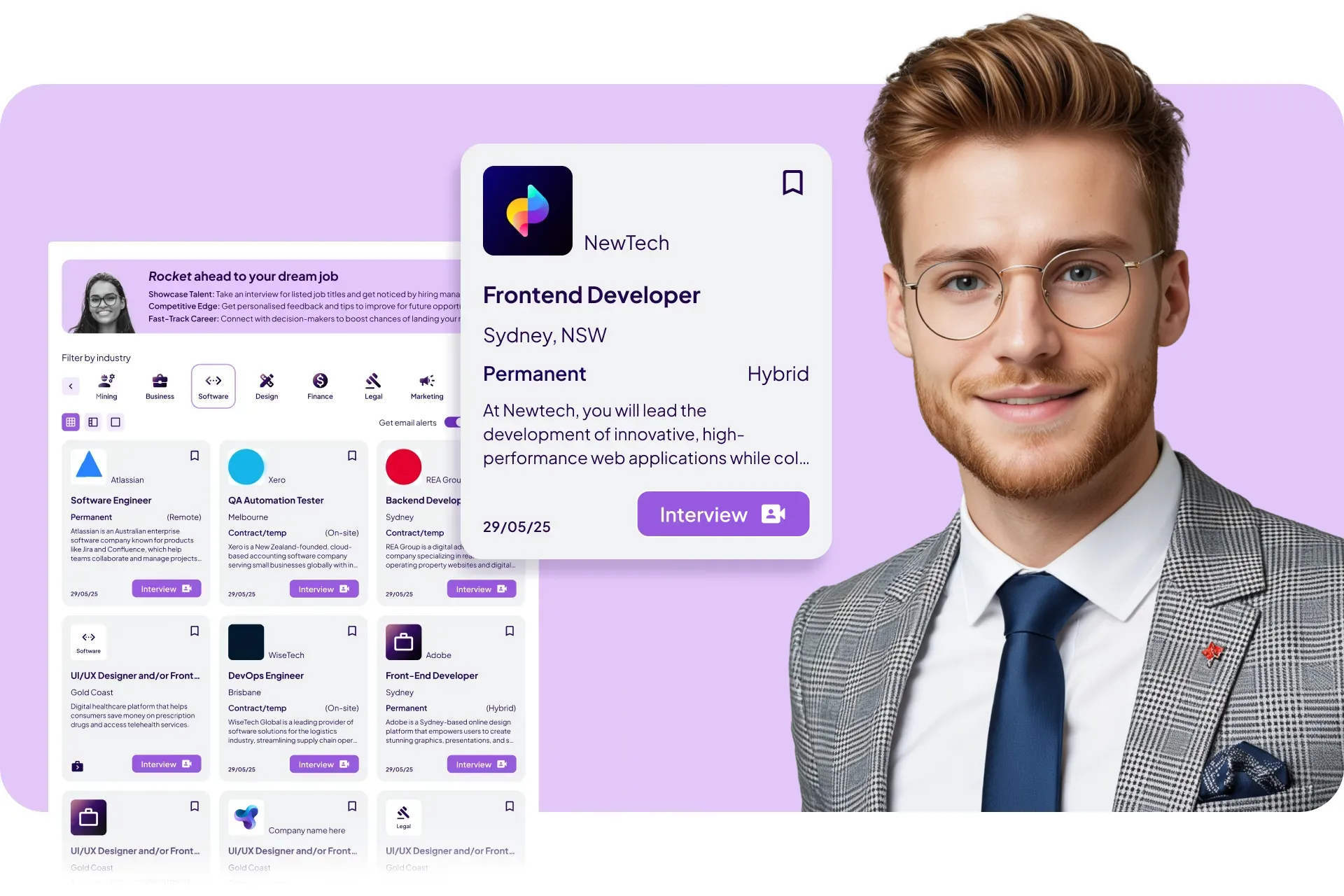 One click to apply, instant interview access - zero friction between interest and action.