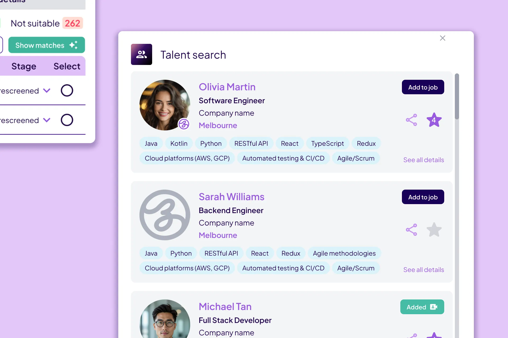 Data-driven confidence: Clear insights show exactly why each candidate matches your requirements - no more guesswork.